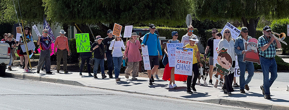 More than 50 people gathered Saturday in King City for the “No Kings” march and rally, a peaceful demonstration held in coordination with similar events nationwide calling for government transparency, justice and protection of democratic principles. Participants met at noon near the vacant building next to Safeway before walking along Broadway to the Highway 101 welcome sign and back, carrying signs with such messages as “We Will Not Bow Down to Corruption, Cruelty, Chaos,” “We Have the Power” and “Patriots Protest Tyranny, Traitors Worship Kings.” The March 28 local rally reflected broader national protests, where citizens voiced opposition to the policies and leadership of President Donald Trump and highlighted the importance of constitutional protections.